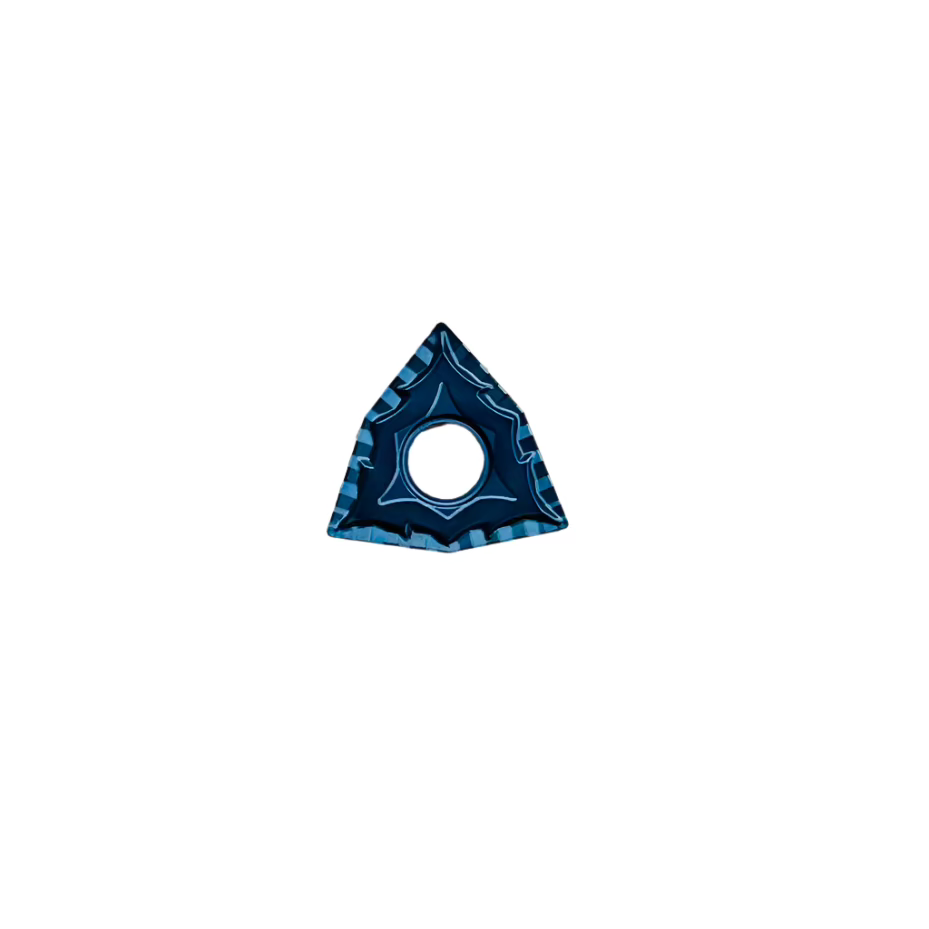 WNMG 080404 is a double-sided, 6-corner indexable carbide insert designed for turning operations. It features a negative rake angle and a chipbreaker geometry ideal for efficient chip evacuation when machining mild steel.
